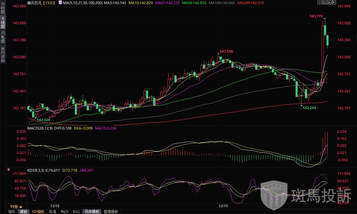 周二(12月19日)亚市,美元/日元短线走高逾100点,最高触及143.78。日本央行将基准利率维持在历史低点-0.1%,将10年期国债收益率目标维持在0%附近,符合市场预期,且未出现政策退出的“黑天鹅”迹象。