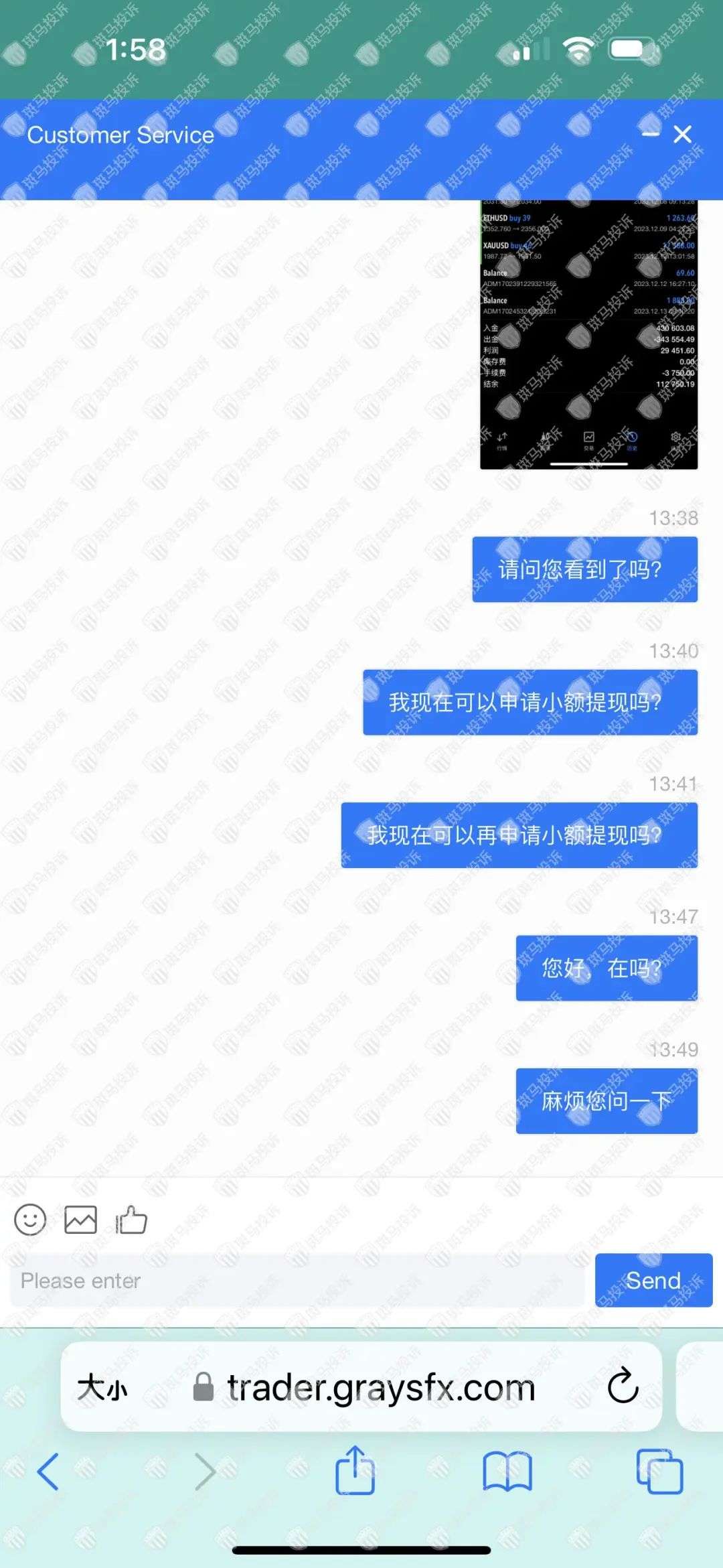 我现在要投诉Grayscale,中文叫灰度公司,是一家海外外汇交易平台。我在23年10月份在Grayscale (灰度公司)交易有了盈利,于11月23日申请出金为343554.49美元,客服说因为现在取款的人特别多,建议我用现金取款的方式可以1-3天就到账,但是现金取款要交10%的手续费。 我在11月28日交了10%的手续费共3.4万美金(Grayscale在12月1日收到我的10%的提款手续费),但是3天以后,我申请的出金还是没有到账。刚开始的时候联系客服叫我耐心等待,在我一直追问下,12月11日客服说15天左右以邮件的形式通知我,但是时间到了,客服却不回信息了。请帮帮我。
