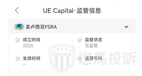 UE Capital平台自称是一家在圣卢西亚注册成立的金融服务公司,并提供公司注册号为2023-00432,众所周知,圣卢西亚FSRA不具有监管金融的职能,所以UE Capital平台没有有效的金融监管,望投资者们注意警惕。