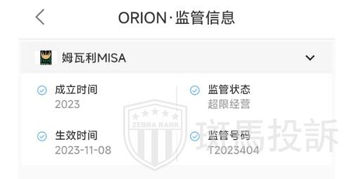 ORION平台在姆瓦利MISA注册,但没有取得外汇监管,不建议投资者进行投资。