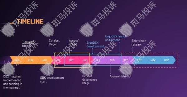 读者可能已经注意到关于催化剂(Catalyst)的ErgoDEX提案,下图展示了路线图。在Cardano和Ergo上部署初始应用程序(根据需要在本地使用各自的代币)后,eUTXO模型的真正力量将开始显现。Ergo将寻求在两条链之间提供去信任交换、跨链网关和共享流动性。