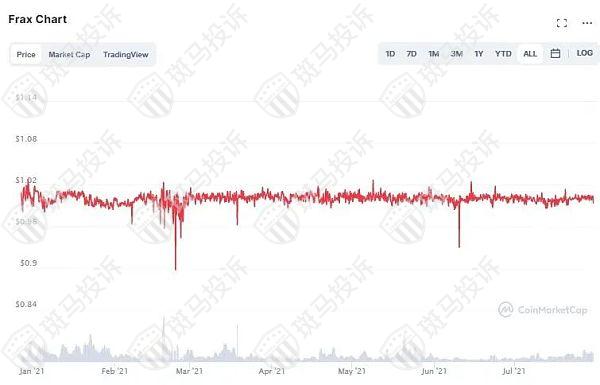 在市场上,算法稳定币的问题也相继显露出来,ESD和BAC锚定1美元,但在第二季度完全脱离了锚定;一直与汇率挂钩的AMPL,成为了在主流几个算法稳定币中波动性最大的。比较乐观的现象是,FRAX长期稳定在1美元价格非常稳定,套利机制比较有效地帮助了FRAX实现价格锚定,极少出现1%以上的正负溢价。