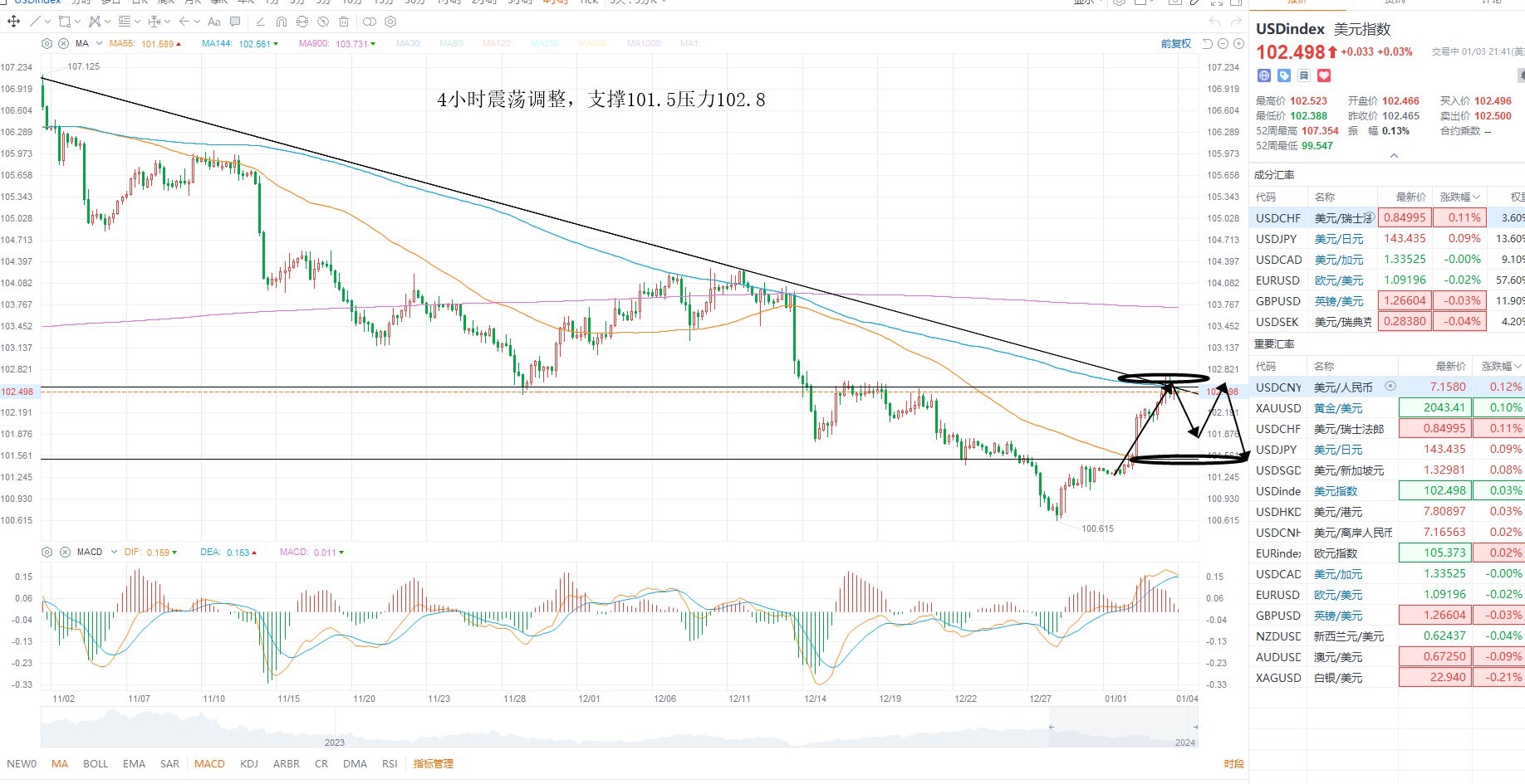 美元指数反弹测试下降趋势线,市场对于衰退预期的定价有所放缓,虽然美联储降息预期依然高涨,但技术层面存在修复的需求,等待压力测试之后的二次回踩为主,金价短期进入调整结构,跌破重要支撑之后等待多头企稳为主,美原油维持箱体震荡,日内等待企稳之后的反弹机会,关注库存数据的变化,是否支撑油价反弹