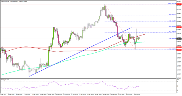 4小时图显示,欧元/美元处在1.0900的关键看涨趋势线下方。最后,欧元/美元测试了1.0880的支撑位区域。欧元/美元在1.0876附近获得支撑,现在正在尝试新的上涨。