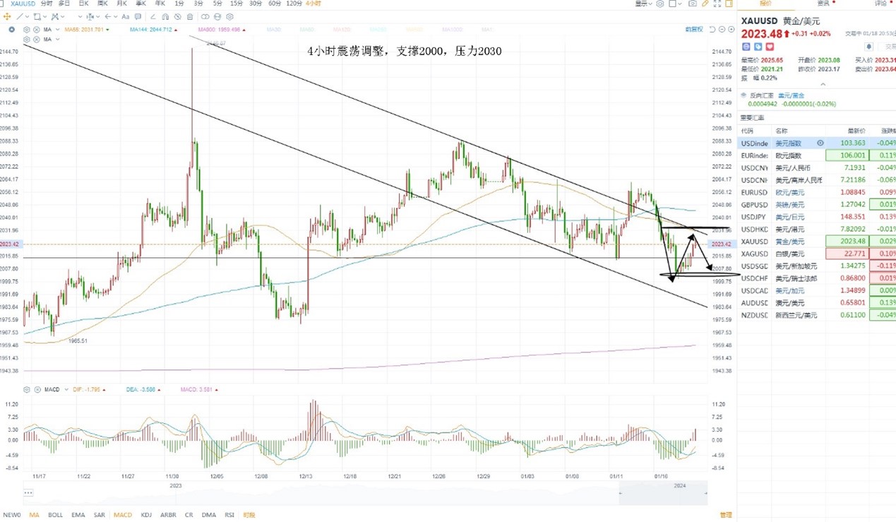 黄金短期跌破区间支撑之后再次反弹,结构上存在二次回踩的需求,因趋势线依然未能有效突破,且美元指数处于反弹修正之中,日内维持区间对待,等待基本面进一步的变化,继续关注市场对于美联储降息预期的变化,4小时级别支撑2000美元整数关,上方压力2030附近,突破则重返多头区间