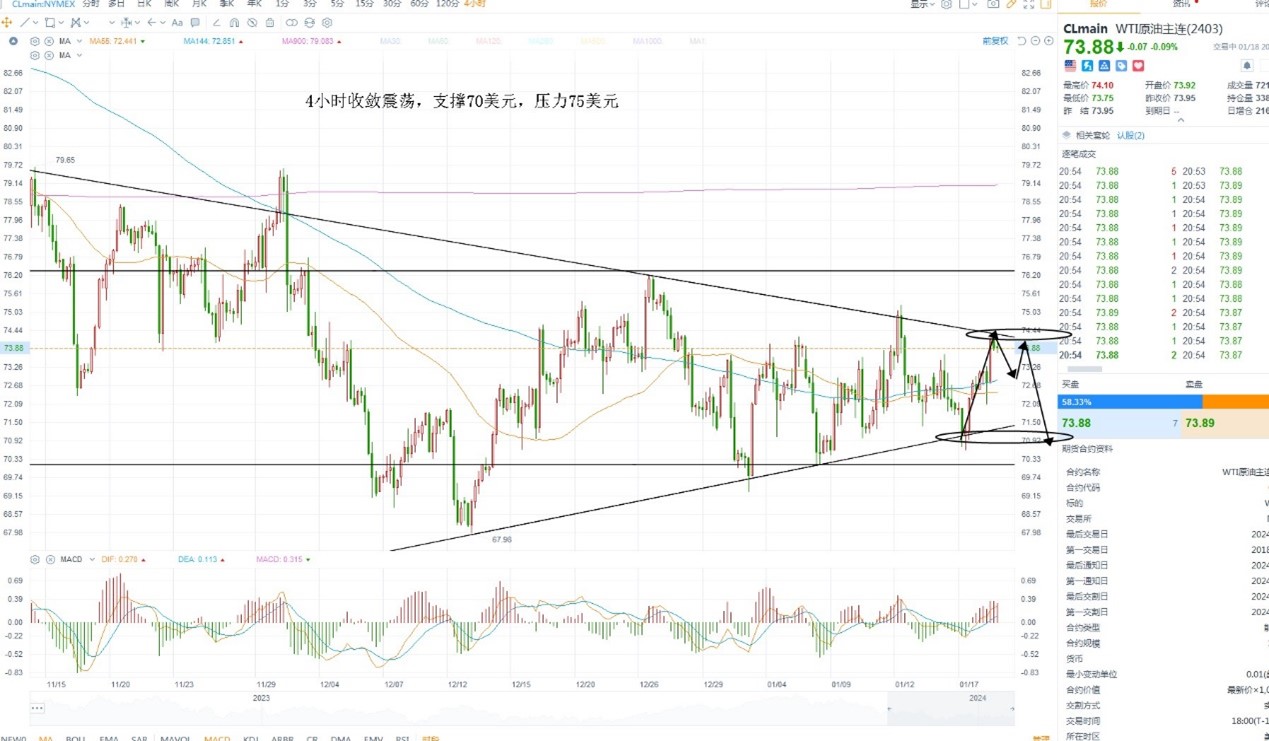 美原油维持收敛震荡,整体结构没有明确的方向选择,日内而言,需求端的下行,以及风偏的下行都是限制油价走强的重要因素,没有基本面变化之前,维持空头对待,短期收敛不破则高抛低吸,上方多空分水岭75美元附近,下方支撑70美元,跌破则有望向下加速