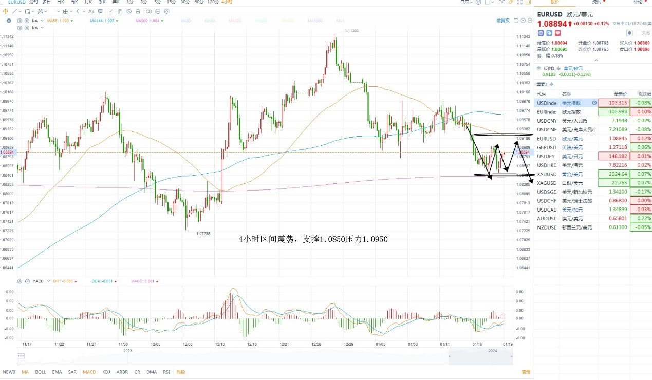 欧美的短期维持震荡调整,虽然美元反弹修正,但是并未能使得非美破位下行,短期依然是区间对待,等待基本面进一步明朗,日内关注美债收益率是否再次上行,带动美元向上测试区间压力,欧美日线级别支撑1.0850附近,上方压力1.0950