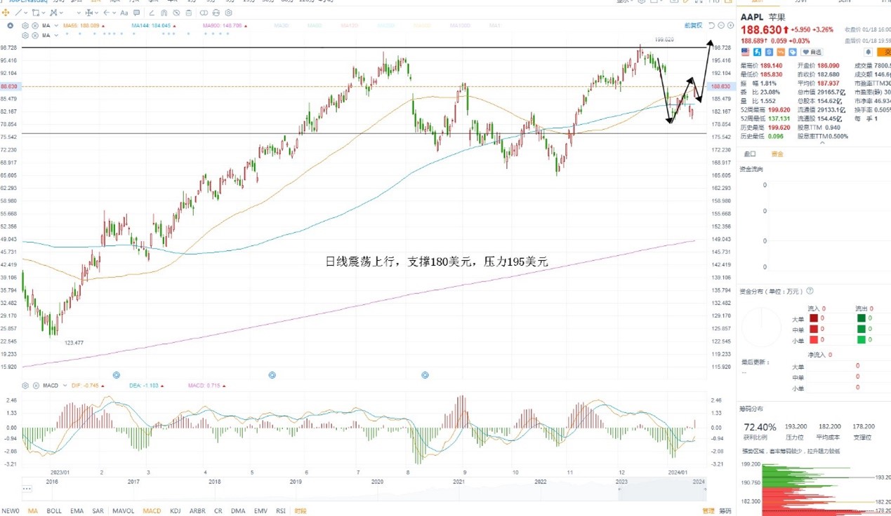 AAPL跟随指数走高,但是依然弱于指数,且尚未突破前期高点,目前这里是对于美元指数修正的反馈,并不是分子端的反转,因此结构上存在二次回踩的需求,短期多头结构尚未破坏之前,逢低吸纳为主,日线级别支撑180美元附近,上方压力195美元,突破则有望向上加速