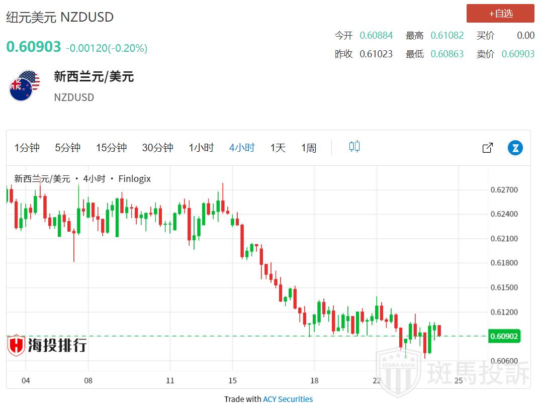 周三亚市,纽元/美元难以延续小幅涨势,仍处于前日触及的近两个月低点0.6065-0.6060附近。纽元/美元目前处在0.6100大关紧下方,全天几乎持平,不过一系列因素可能有助于限制纽元/美元延续跌势。