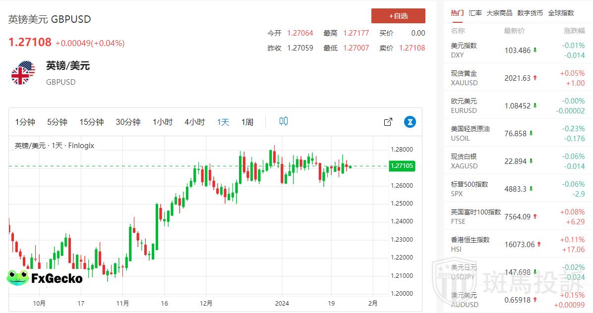 周五亚市早盘,英镑/美元持平于 1.2707 附近。