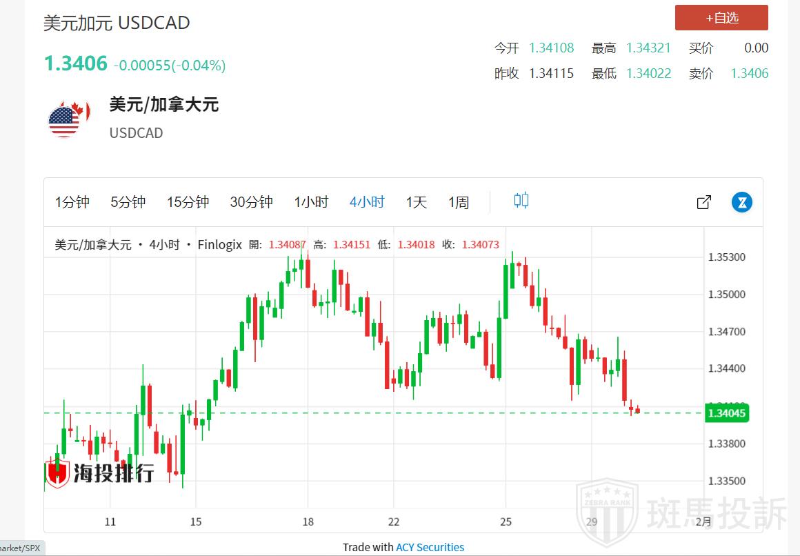 美元/加元连续第四个交易日处于负值区域,接近1.3410。