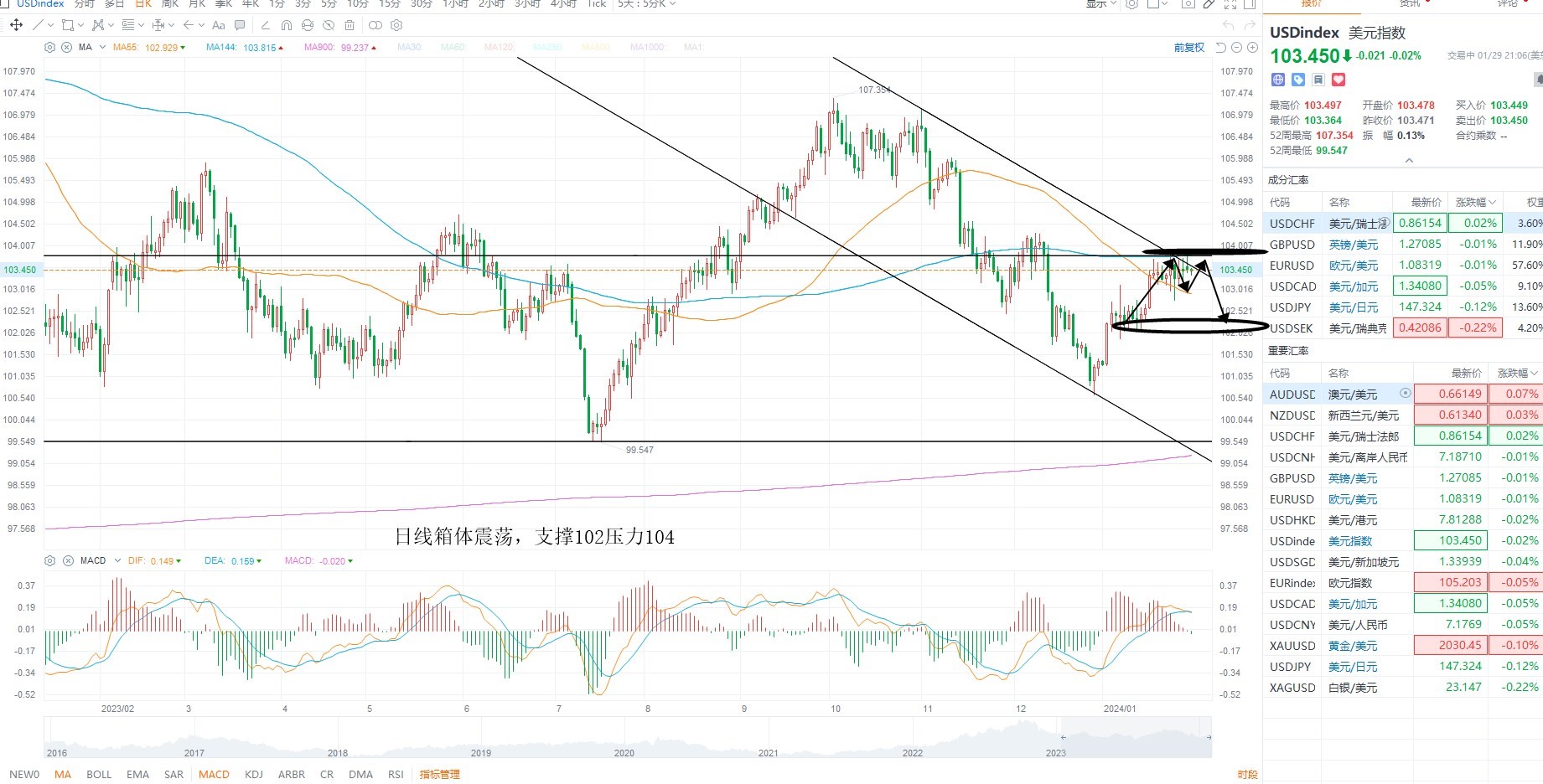 美元指数维持高位震荡,市场交投清淡,因后半周将迎来非农数据以及美联储利率决议,在大事件尚未落地之前,市场没有明确的方向,技术层面上依然处于下降通道之内,等待压力测试之后的沽空机会为主,金价方面短期震荡反弹,但尚未突破箱体压力,结构上存在二次回踩的可能性,等待方向选择,美原油冲高回落,中期空头结构尚未改变,箱体之内高抛低吸为主
