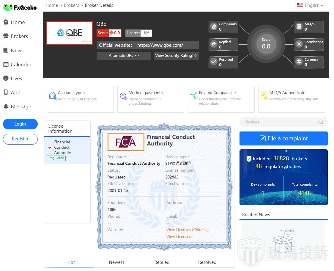 The QBE platform is regulated by the FCA in the UK, the regulatory certificate number is 202842, and it has obtained the STP pass-through license.
