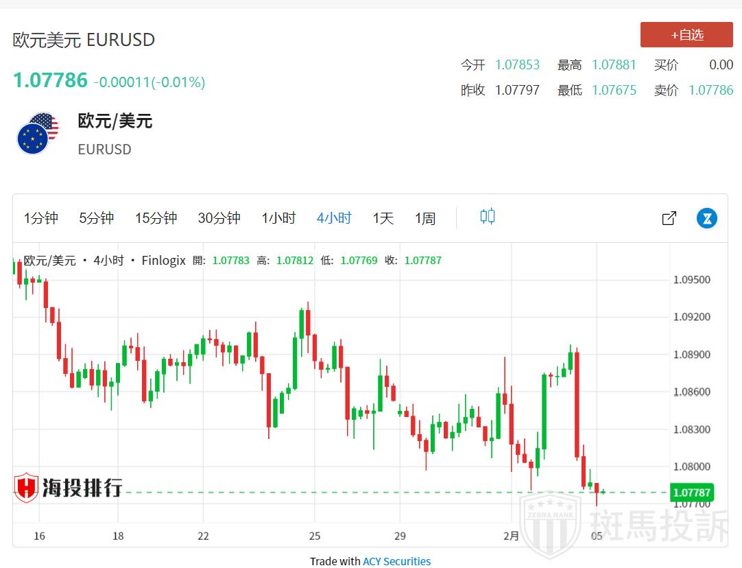 周一亚市早盘,欧元/美元在1.0700中位上方面临一些抛售压力。美元指数(DXY)走高,原因是美联储(FED)主席杰罗姆-鲍威尔推迟了降息时间。欧元/美元目前交投于1.0772附近,日内下跌0.19%。