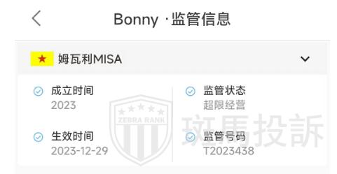 该公司受姆瓦利MISA监管,但姆瓦利MISA并无监管资格,所以Bonny属于超限经营。