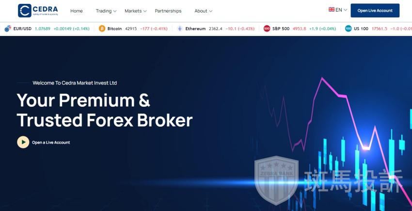 Cedra Market Invest Ltd 是一家一流的外汇经纪商,提供透明和公平的交易条件。