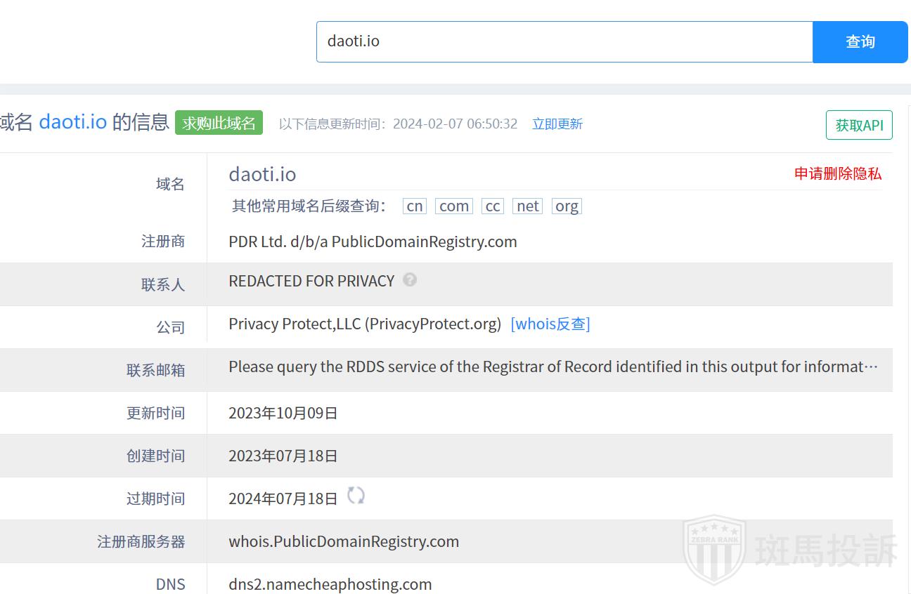 Daoti.io平台目前在斑马投诉未收到相关投诉。