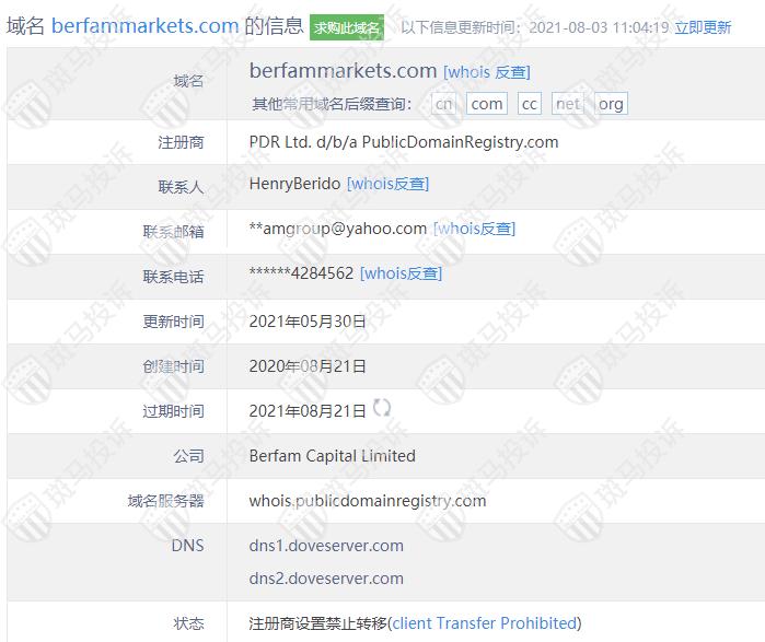 这家平台叫Berfam Markets,成立于2020年,全球排名2890名,目前无监管,没有外汇牌照,不能做外汇保证金交易,风险扫描显示1条风险,投资者资金安全无保障。