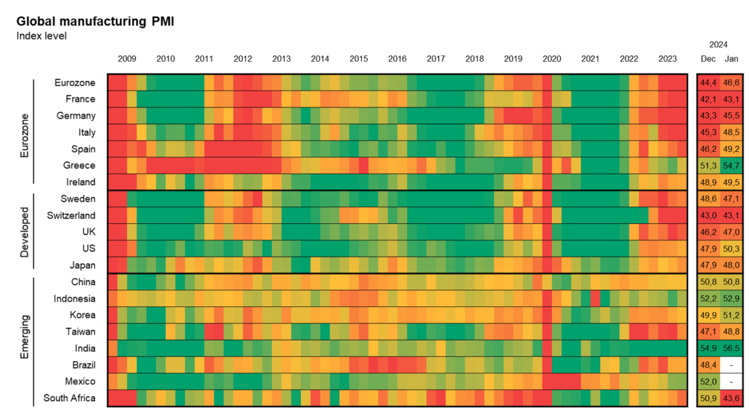 Harnett认为长端利率上50-100个bp可能就会诱发市场的回调,可50-100bp的长端美债收益率上升现在会由什么事件触发呢?2月的再融资会议没有掀起太大的波澜,市场的降息热情虽被打消,但政策利率进一步走高的条件也不具备,看起来触发器仅剩下美国经济的空中加油——比如Goldman最近试图营造的全球制造业见底叙事,亦或是市场开始定价通胀的二次飞升?