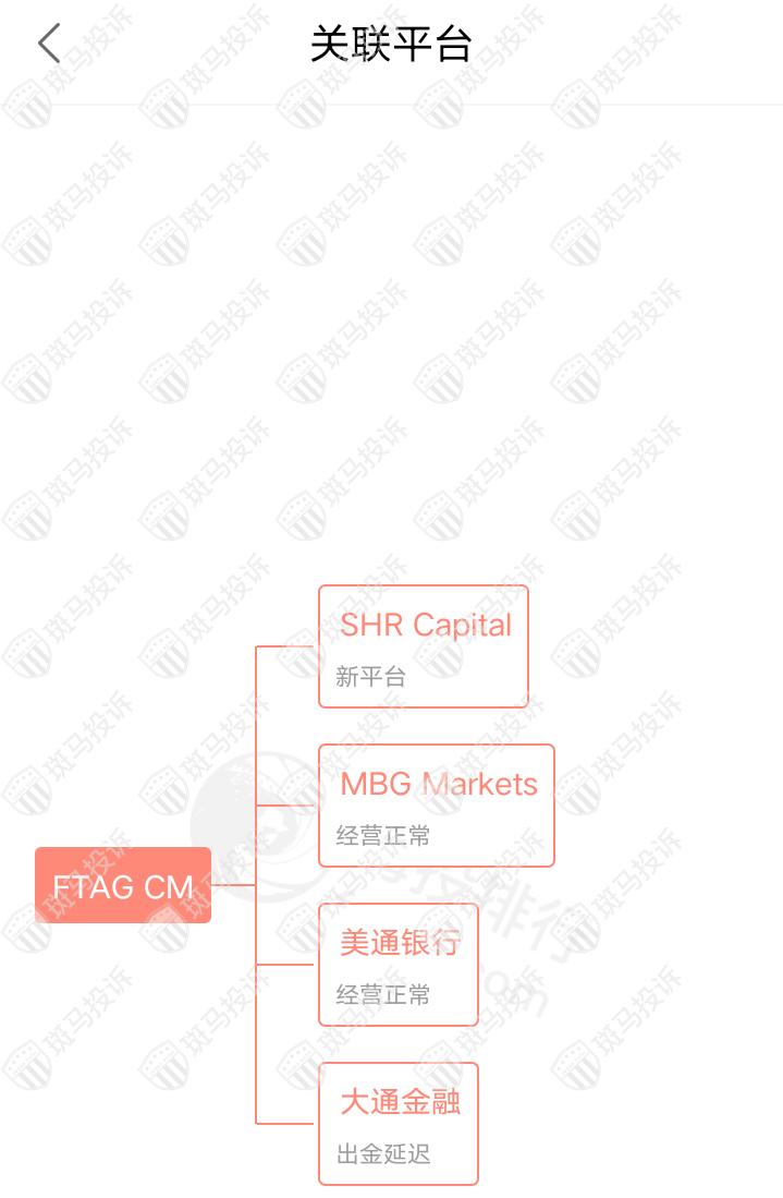 主白标关系显示,FTAG CM平台目前和4家平台存在关联,其中1家存在出金延迟的情况。