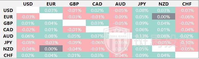热图显示了主要货币相对于其他货币的百分比变化。基础货币从左列中选取,而报价货币从顶部行中选取。例如,如果您从左栏中选择欧元,并沿着水平线移动到日元,则框中显示的百分比变化将表示欧元(基数)/日元(报价)。