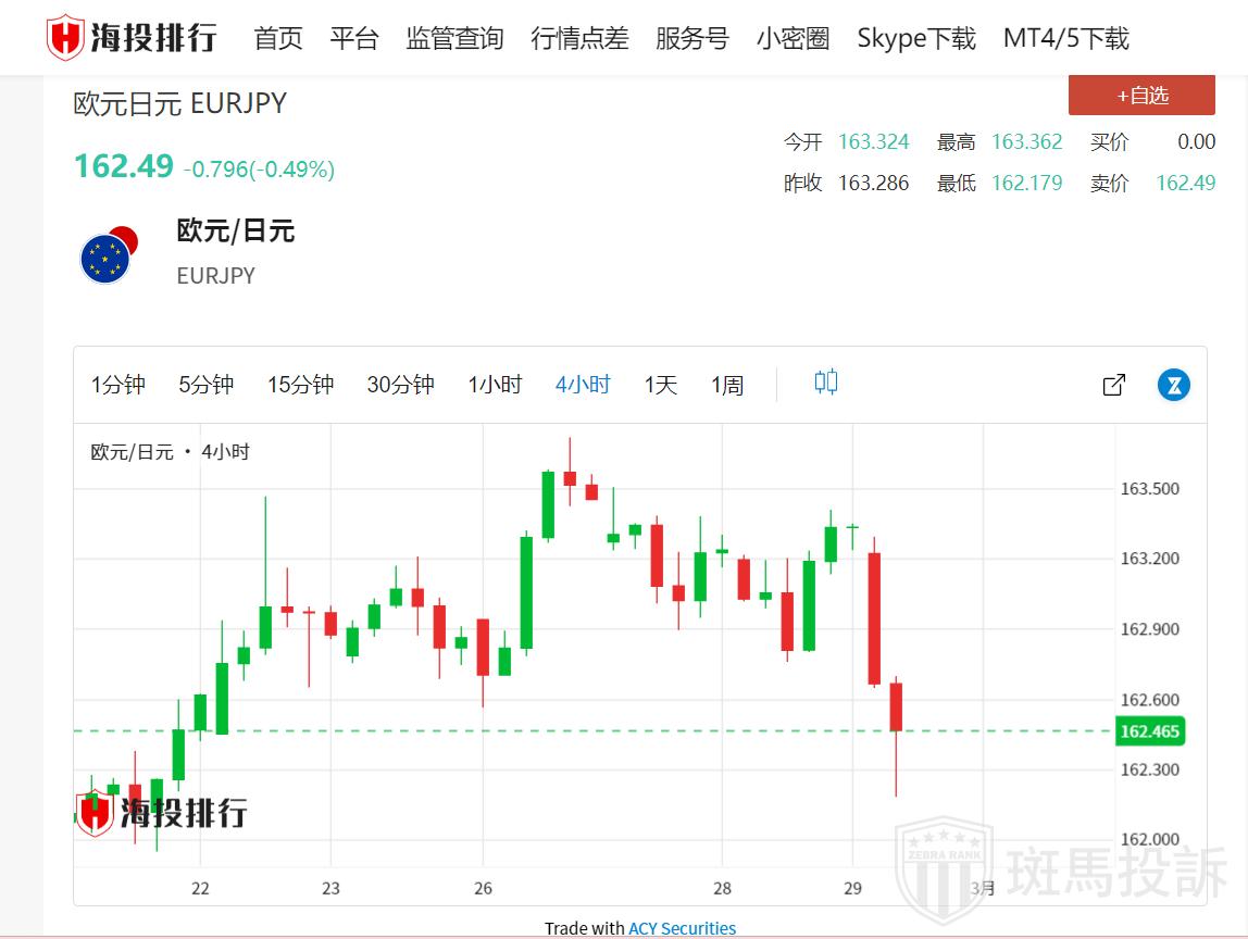 日本央行周四释放鹰派信号后,欧元/日元下跌约0.62%。