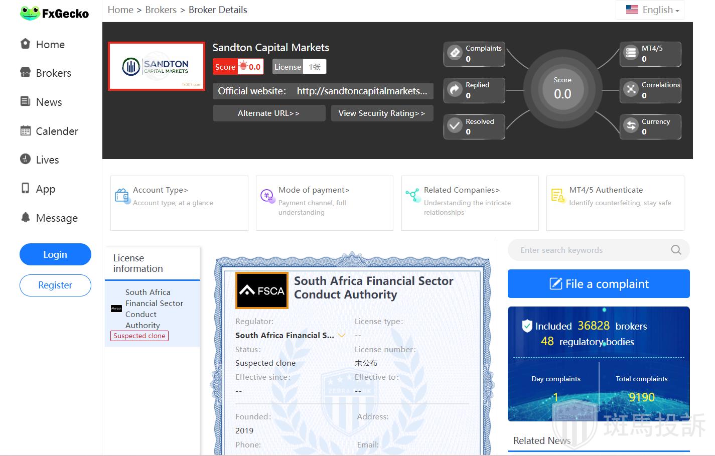 FxGecko has not received any complaints about Sandton Capital Markets forex broker at the moment.