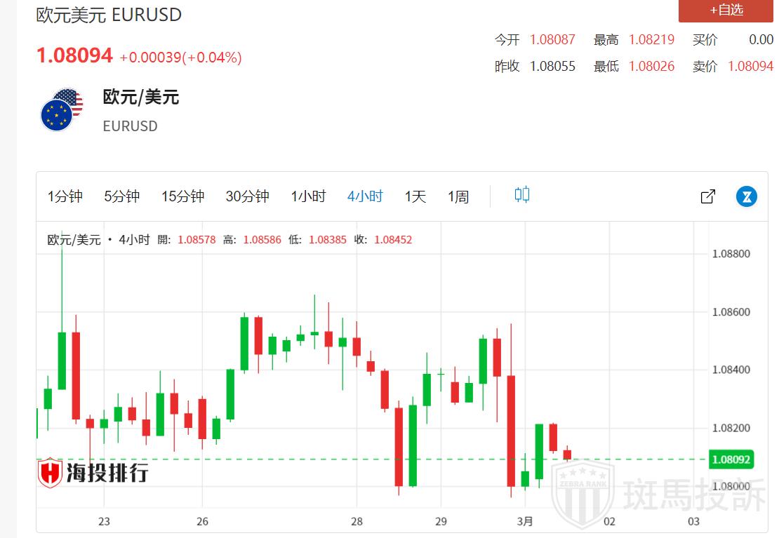 欧市早盘,欧元/美元中断三连跌。尽管美元(USD)需求重燃,但欧元/美元仍出现反弹。市场参与者将从当天晚些时候公布的欧元区通胀数据中获得更多线索。截至记者发稿时,欧元/美元报1.0809,当日上涨0.03%。