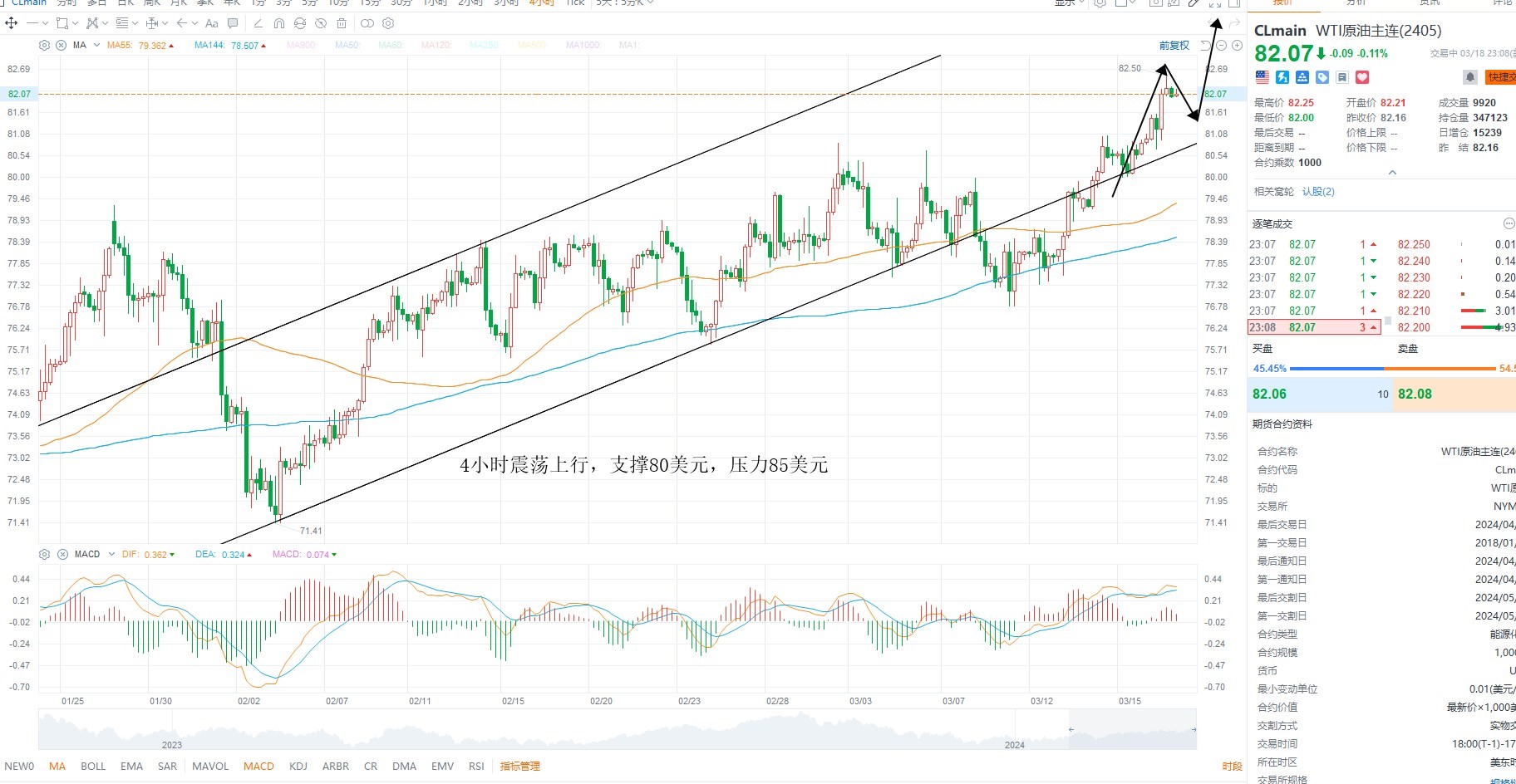 美原油突破箱体压力,结构上存在加速的可能性,基本面上OPEC第二大产油国伊拉克表示下调出口量,供给端上支撑油价,同时EIA上调需求预期,日内油价存在继续上行的可能性,短期回踩支撑80美元不破,则维持多头结构,上方压力85美元附近
