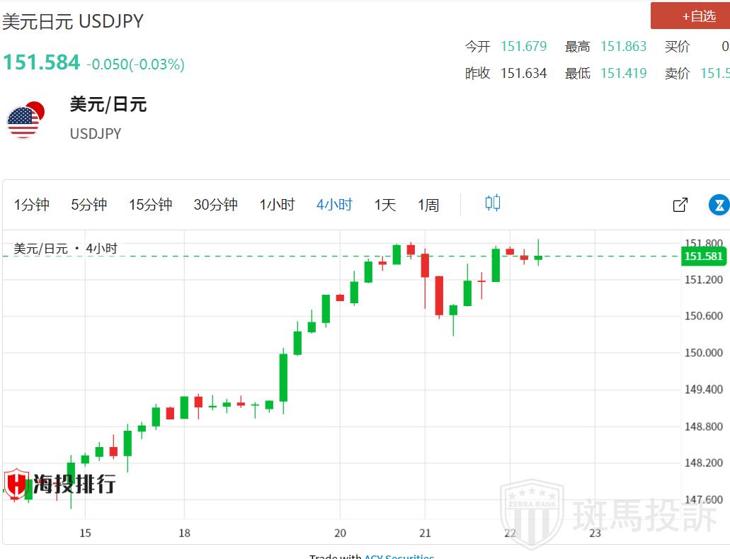 从技术角度来看,隔夜盘中美元/日元强势上涨后处在151.75区域附近,正好位于周三创下的年内高点之前。然后是2022年10月触及的数十年高点152.00附近,如果明确突破该水平,将成为看涨交易者的新触发点。届时,美元/日元可能会延续2023年1月以来的长期升势。