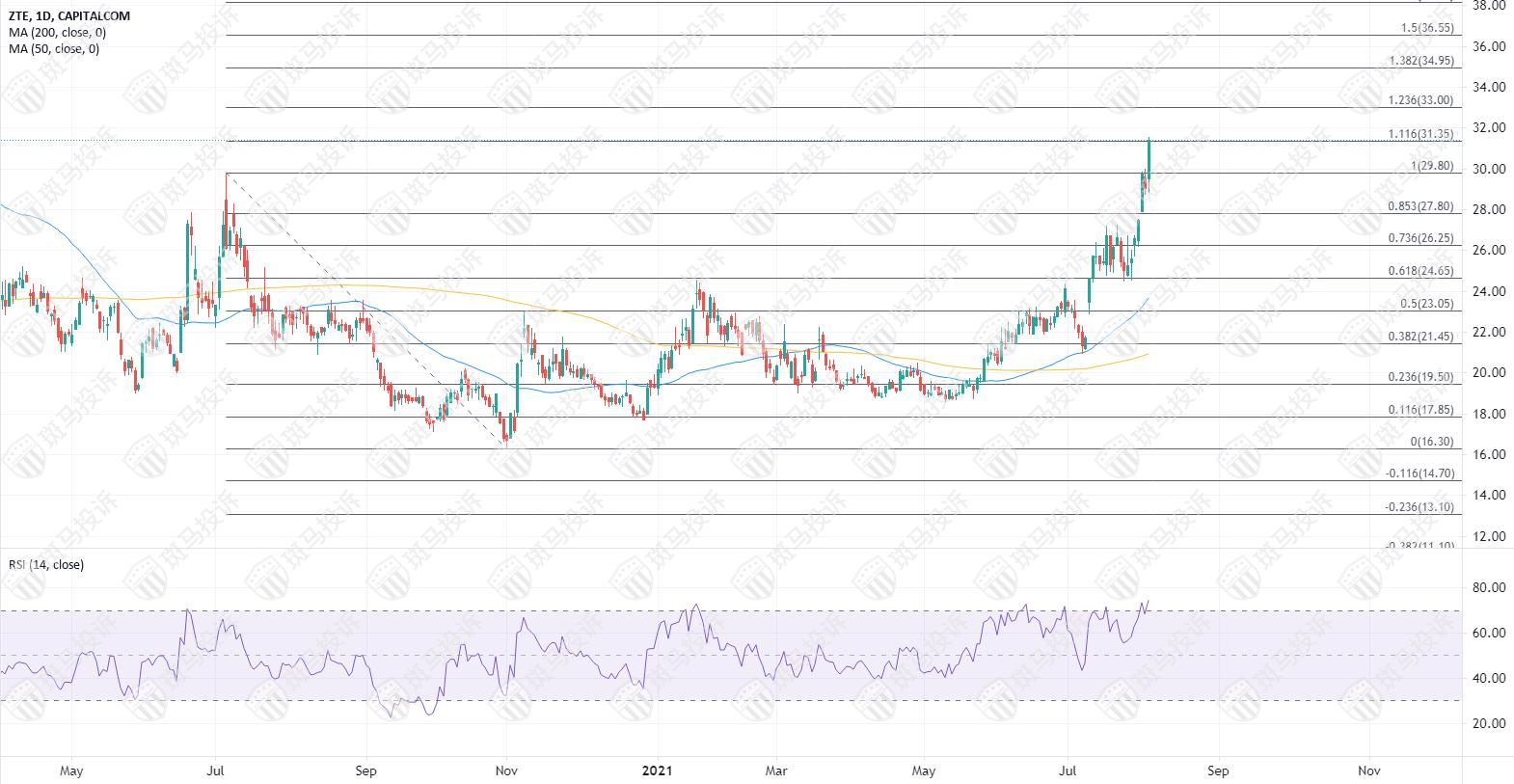 中兴通讯(00763)今日午后股价拉升突破31港元,刷新年内高位,同时也是2020年3月份以来的新高。自中兴通讯在上个月发布盈喜以来,股价自7月8日的低位已经回升超过40%,如果加上日内的强劲拉升,涨幅已将近50%。