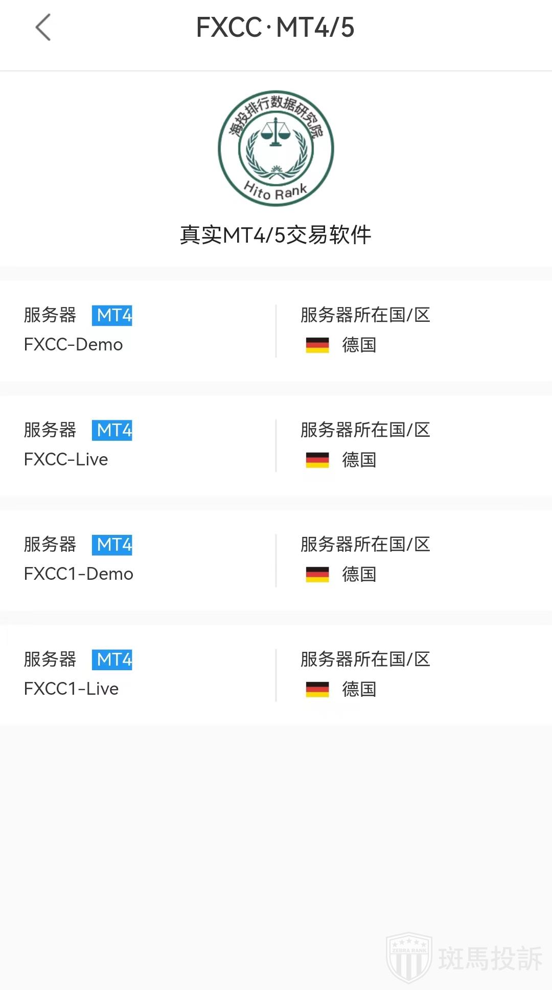 FXCC平台服务器有4台,在德国。