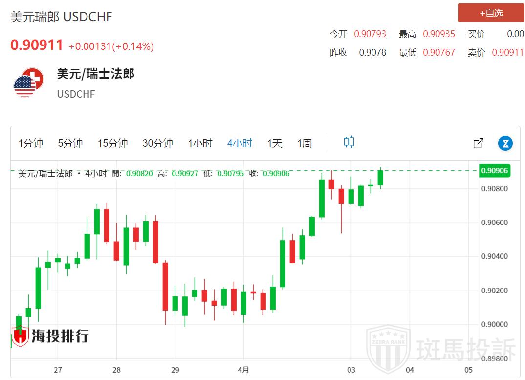 风险基调走软支撑避险货币瑞郎,并在美元走软的情况下限制该货币对上涨
