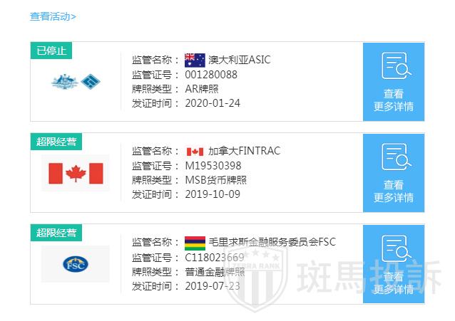 海投排行显示CGTrade持有三家的金融牌照,其中澳大利亚的牌照已经失效了。