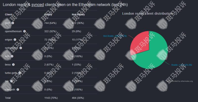 但目前看分叉的概率并不大,根据ethernode数据显示,已经有70.3%的客户端做好支持EIP-1559的准备了。
