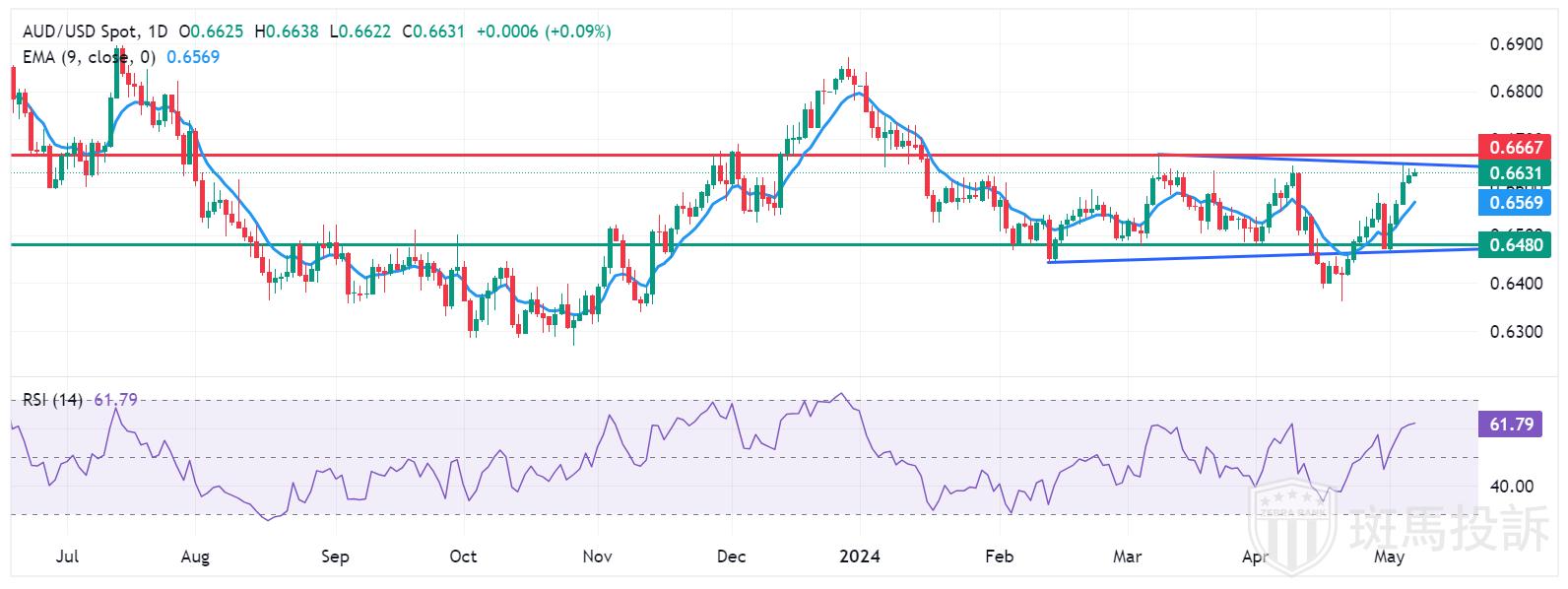 技术分析:澳元可能在 0.6650 附近测试三角形上边界
