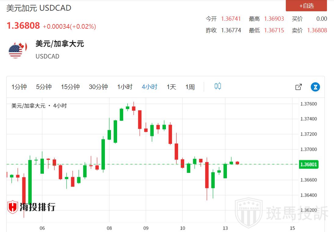 周五欧洲时段早盘,美元/加元在1.3680附近收涨。