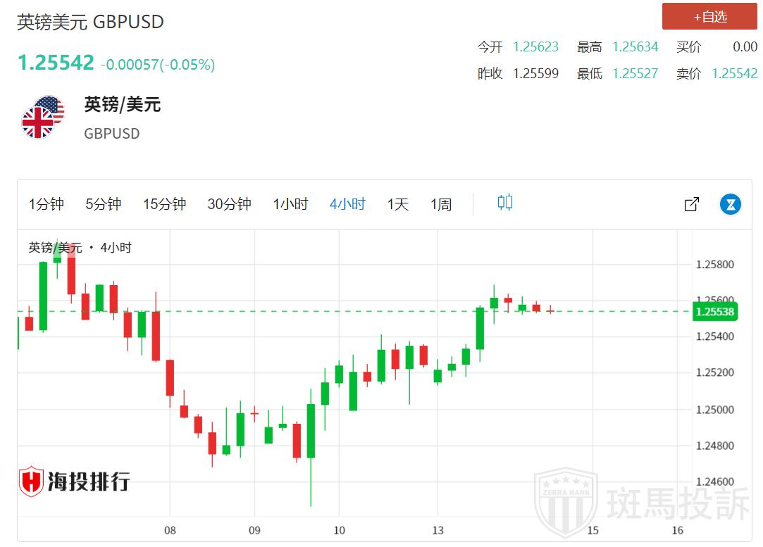 市场风险情绪改善,英镑/美元维持在主要水平1.2550附近。