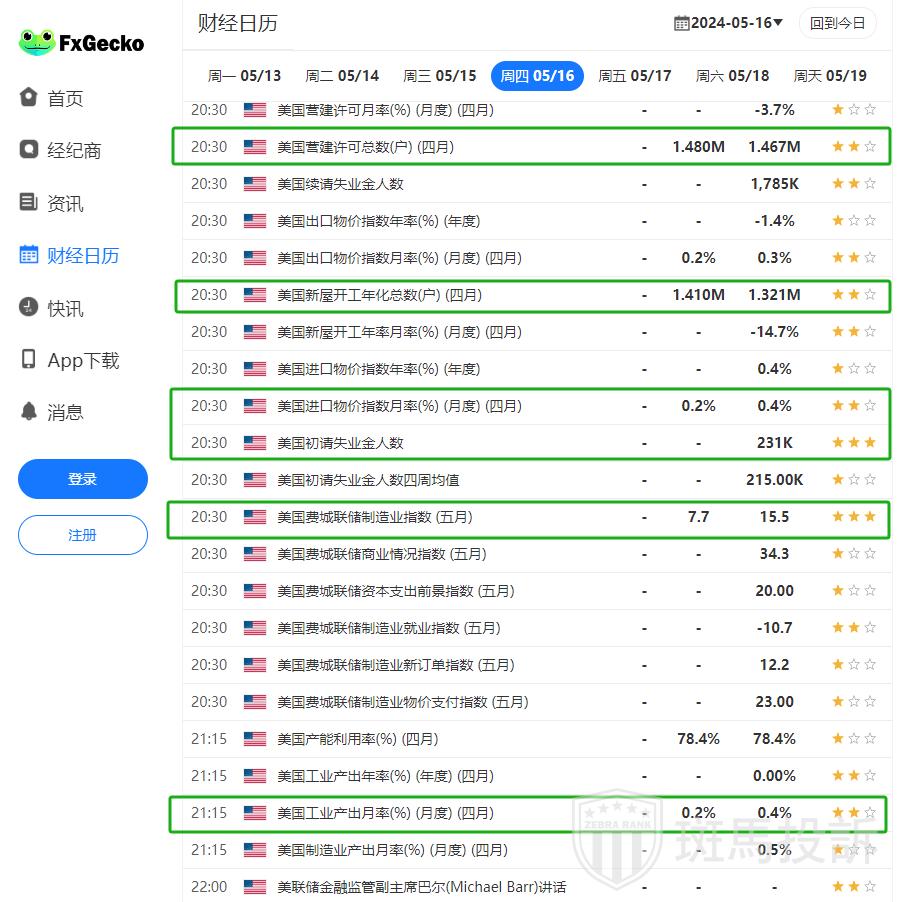 美国 4 月份消费者价格指数(CPI)同比增长 3.4%,前值为增长 3.5%。剔除食品和能源等波动性项目的核心 CPI 通胀率在 4 月份同比上升了 3.6%,前值为 3.8%。这两个数字均符合共识。4 月份月度总体和核心 CPI 通胀率从 3 月份的 0.4% 放缓至 0.3%。此外,美国 4 月份零售销售月率为 0%,而 3 月份为 0.6%,低于 预期的 0.4%。