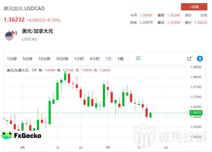 美元/加元在 1.3600 心理价位获得支撑,周四欧洲早盘反弹至1.3615。