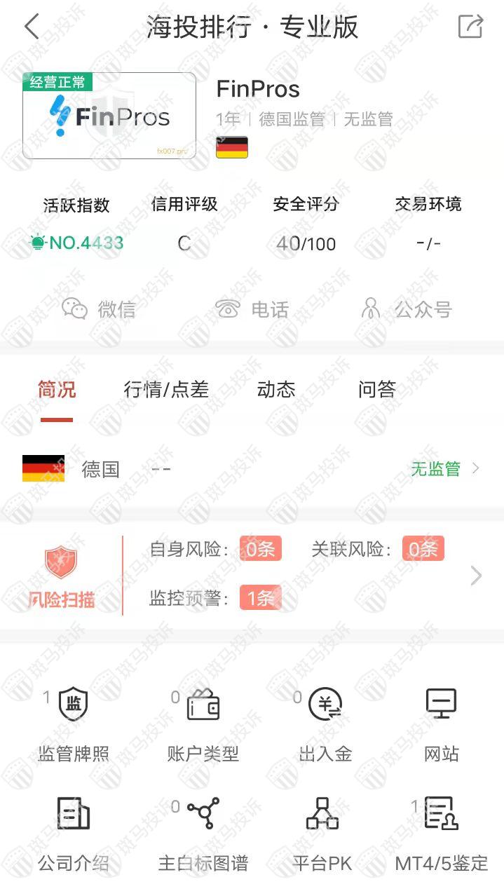 FinPros平台目前在斑马投诉未收到相关投诉。