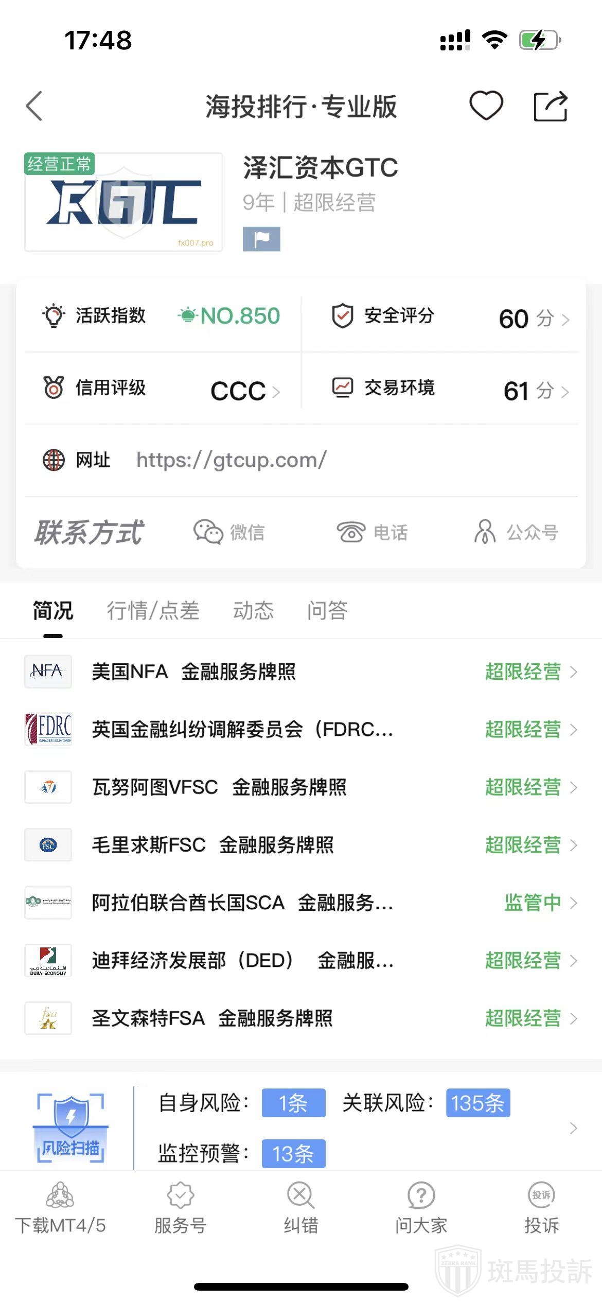 2.搜索结果显示,IFS Markets目前只有1个监管,即外汇牌照。单一监管机构的监管可能不够全面,安全性有待进一步验证。