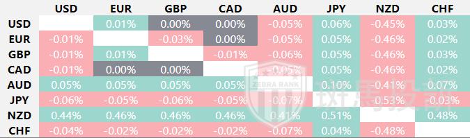 热图显示了主要货币相对于其他货币的百分比变化。基础货币从左列中选取,而报价货币从顶部行中选取。例如,如果您从左栏中选择欧元,并沿着水平线移动到日元,则框中显示的百分比变化将表示欧元(基数)/日元(报价)。