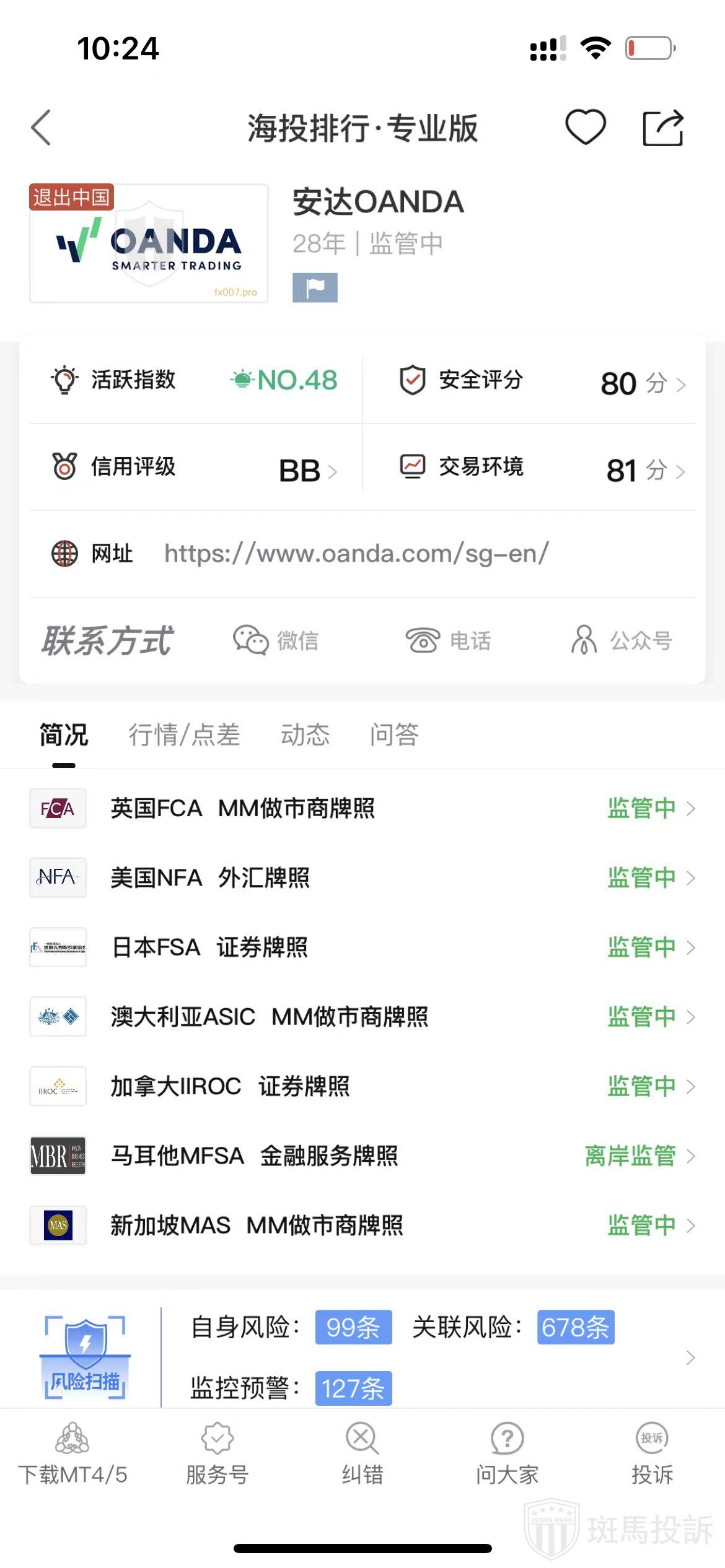 海投排行综合点评:安达OANDA从成立时间、监管、主白标等信息综合来看是不错的,但如果你是中国投资者,有人向你极力推荐OANDA安达平台,就一定要当心了。业内人士都知道,早在2020年10月,OANDA安达就已宣布不再为中国居民提供外汇交易,也不支持开户入金。截至现在,OANDA安达已经退出中国市场三四年年了,但在这时间里,假冒OANDA安达却是一个接一个,从未退出过。请注意辨别,切勿轻易听信他人言语,谨慎投资!了解详情:https://www.fx007tw.com/brokers/2c9f2ea8620dc96801620ddc8f440051