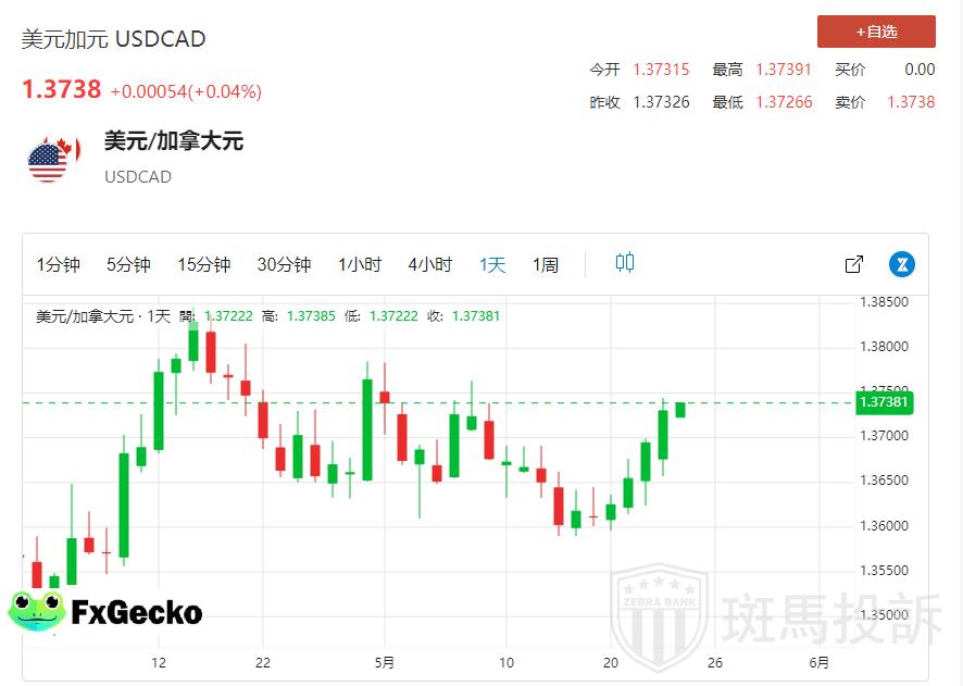 周五亚市,美元/加元走强至1.3730 附近。