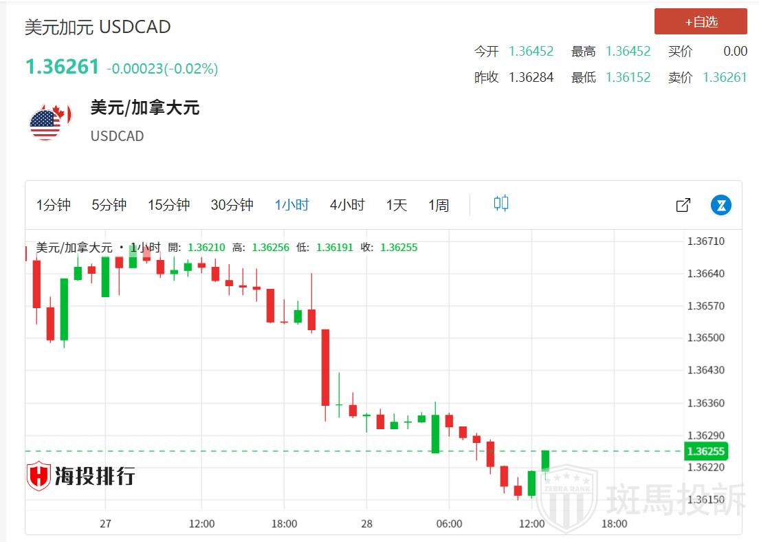 由于美元的吸引力不确定,美元/加元下跌至1.3600