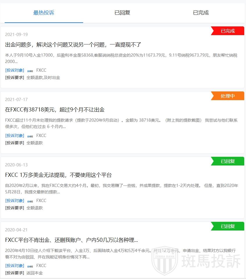 3. 客户投诉③:客户在2020年5月28日申请提款,至今未果。尽管客户多次联系FXCC,但仅得到“审查中”的答复,未能解决问题。