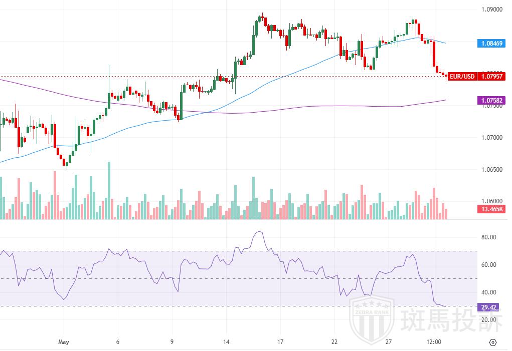 若多头重新掌控局面,EUR/USD可能重回5月高点1.0894(5月16日),随后是3月高点1.0981(3月8日)和1月11日的周高点1.0998,最终挑战重要的1.1000水平。