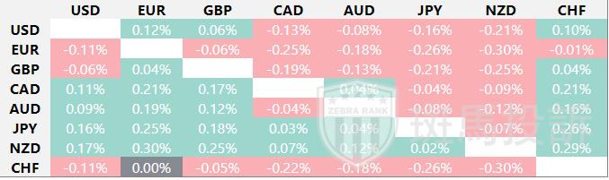 热图显示了主要货币相对于其他货币的百分比变化。基础货币从左列中选取,而报价货币从顶部行中选取。例如,如果您从左栏中选择欧元,并沿着水平线移动到日元,则框中显示的百分比变化将表示欧元(基数)/日元(报价)。