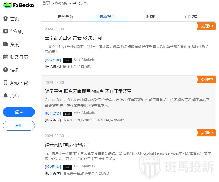 近期,有用户投诉GFS Markets(Global Femic Services)坑骗投资者,怀疑该平台是诈骗。